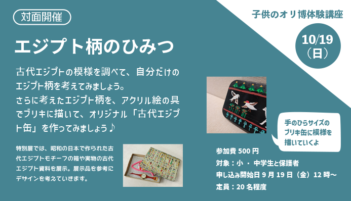 2025年10月19日(日) 【子供のオリ博体験講座】 「エジプト柄のひみつ」