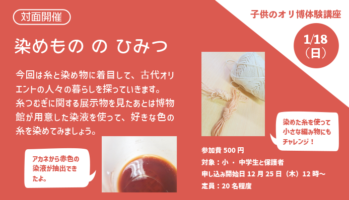 2026年1月18日(日) 【子供のオリ博体験講座】 「染めもののひみつ」